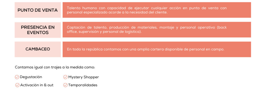 En Promosoluciones, ofrecemos este servicio garantizando la selección, capacitación y supervisión de promotores que representen fielmente la marca de nuestros clientes. Nos encargamos de toda la logística operativa, asegurando que el personal cumpla con los objetivos de ventas, presencia y promoción en el mercado.