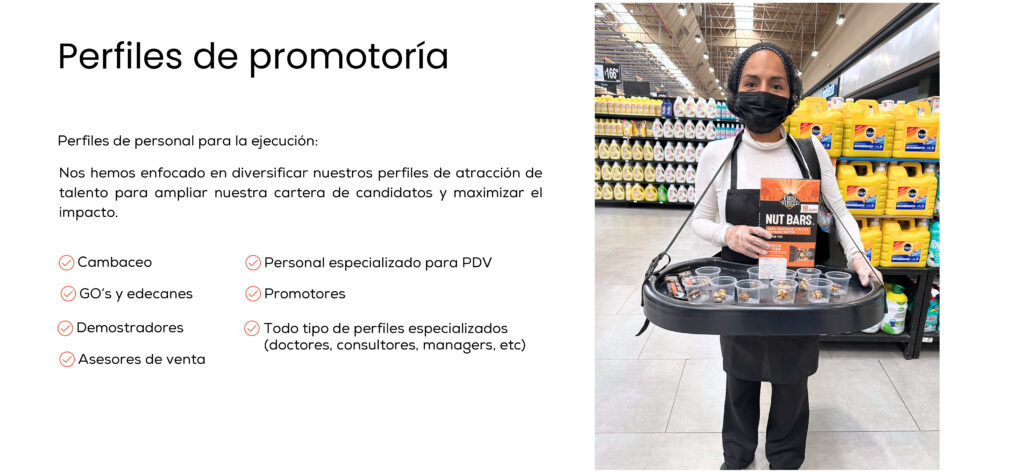 La promotoría dedicada es un servicio especializado en la gestión de personal de promoción para marcas y productos en puntos de venta específicos. Se enfoca en contar con promotores exclusivos para una marca, quienes se encargan de la exhibición, venta y posicionamiento de los productos en tiendas y autoservicios.